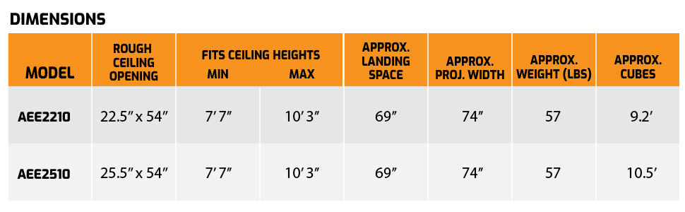 Louisville Ladder Elite 7 Ft 8 In 10 Ft 3 In 25 5 In X 54 In Aluminum Attic Ladder With 375 Lbs Maximum Load Capacity Aa2510 The Home Depot