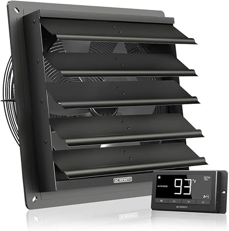 Amazon Com Ac Infinity Airlift T16 Shutter Exhaust Fan 16 Inch With Temperature Humidity Controller Wall Mount Ventilation And Cooling For Sheds Attics Workshops Kitchen Dining