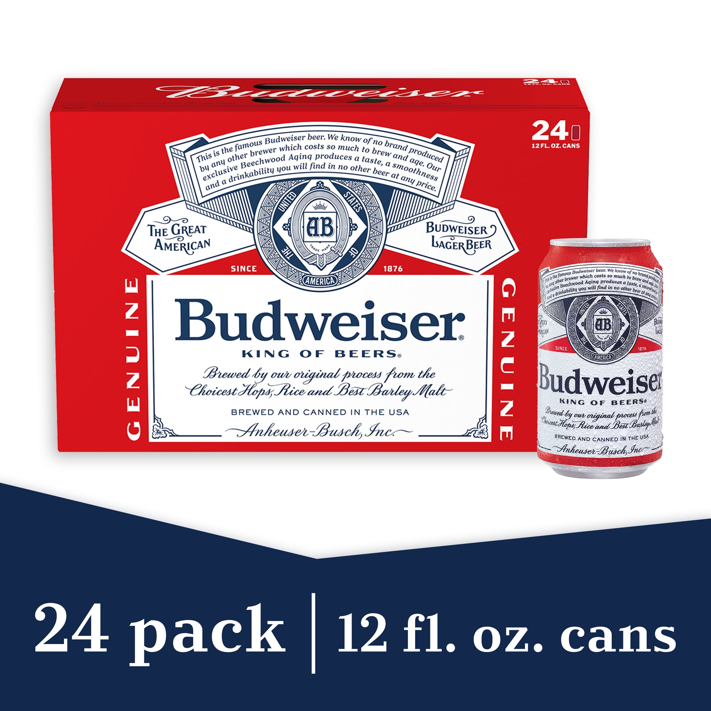 Budweiser Beer 24 Pack Beer 12 Fl Oz Cans 5 Abv Walmart Com Walmart Com