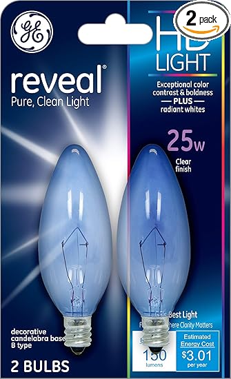 Ge Reveal Hd Blunt Tip Decorative Light Bulb 25 Watt Light Bulb 150 Lumen Candelabra Light Bulb Base 2 Pack Chandelier Light Bulbs Incandescent Bulbs Amazon Com