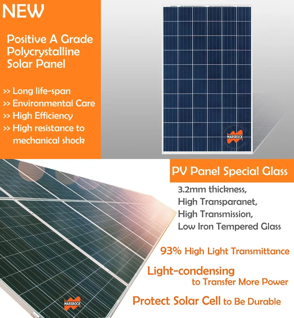 These solar panels are high efficiency 12 volt solar panels featuring sturdy aluminum frames and high transparency tempered glass tops.