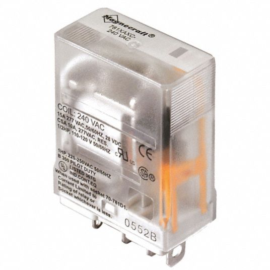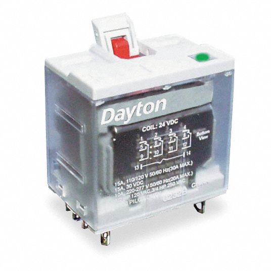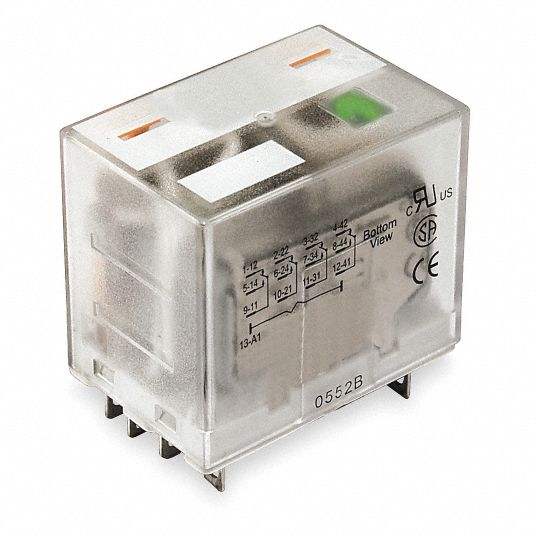 Enclosed pre wired relay coil volts 24vac dc 208 to 277vac contact form spdt dimensions 2 3 in h x 3 2 in w x 1 8 in d contact material silver cadmium oxide indicator type led contact amp rating resistive 20a 277vac 5a 480vac 16 in.