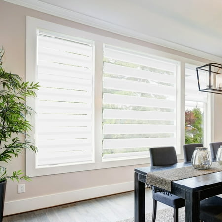 Biltek Cordless Zebra Roller Blinds Sheer Shades Free Stop Combi Blinds Dual Layer Sheer Or Privacy White 28 W X 72 H Walmart Canada