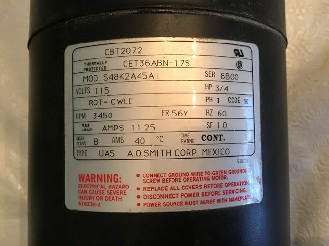 Also it is a century e plus p n 177449 uprated nfs service factor 1 67 amps 6 0 5 6 11 2 volts 208 230 115 amb 40.