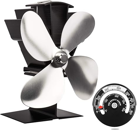 Amazon Com Vivohome Aluminum 4 Blade Heat Powered Stove Fan With Stove Thermometer Fireplace Fan For Wood Burning And Circulating Warm Kitchen Dining