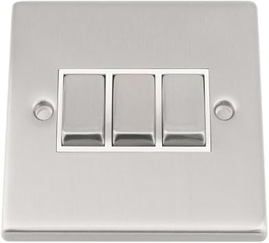 Discount Electrix 3 Gang 2 Way 10 Amp Light Switch Brushed Chrome Finish With White Insert Amazon Co Uk Lighting