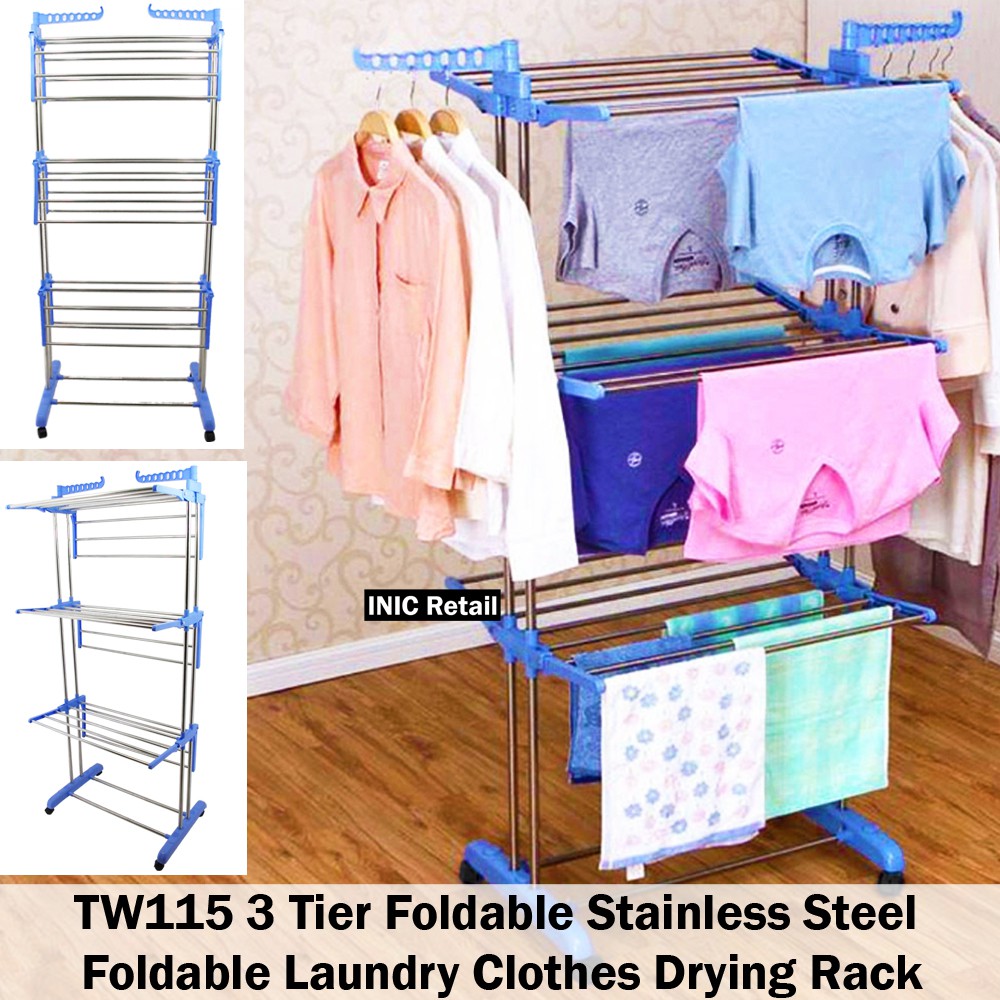 Tw115 3 Tier Foldable Stainless Steel Foldable Laundry Clothes Drying Rack Shopee Malaysia