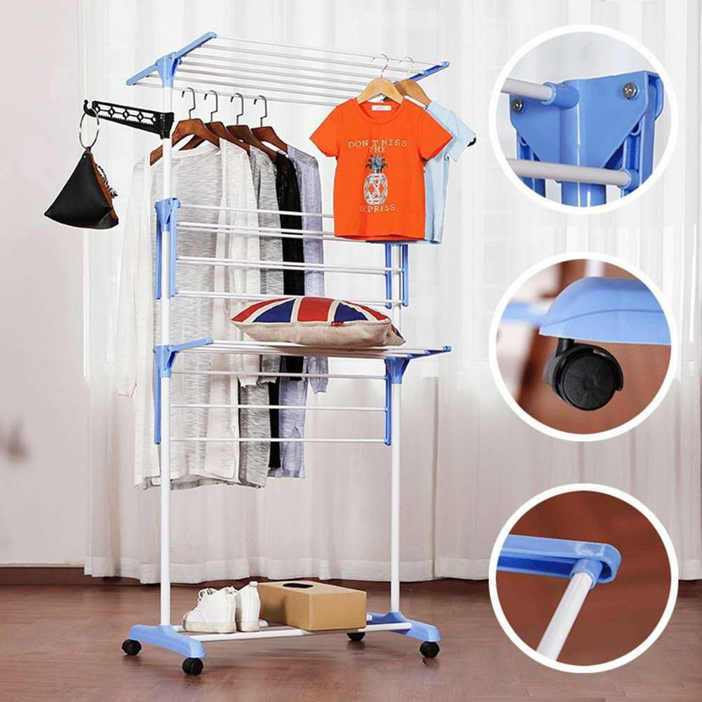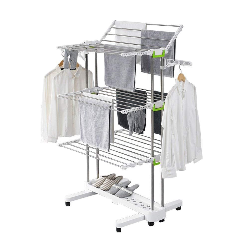 Br505 3 Tier Collapsible Clothes Drying Rack With Casters Stainless Steel Hanging Rods Indoor Outdoor Use Shopee Malaysia